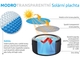 Plandeka solarna wykonana jest z niebiesko-przezroczystej plandeki termoizolacyjnej z bąbelkami.