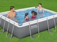 Prostokątny basen Bestway z zabudową (pojemność wody ok. 3662 litrów) to samodzielny basen rodzinny. Basen naziemny do montażu natynkowego wykonany jest z trójwarstwowego PCV. Dzięki metalowej konstrukcji jest bardzo mocny i stabilny. Długie życie. Przykuwa uwagę prostym montażem.