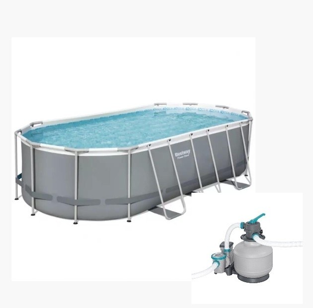 Owalny basen Bestway o konstrukcji 5,49 x 2,74 x 1,22 m to basen ogrodowy naziemny do montażu naziemnego. W tym filtracja piaskowa i schody bezpieczeństwa.