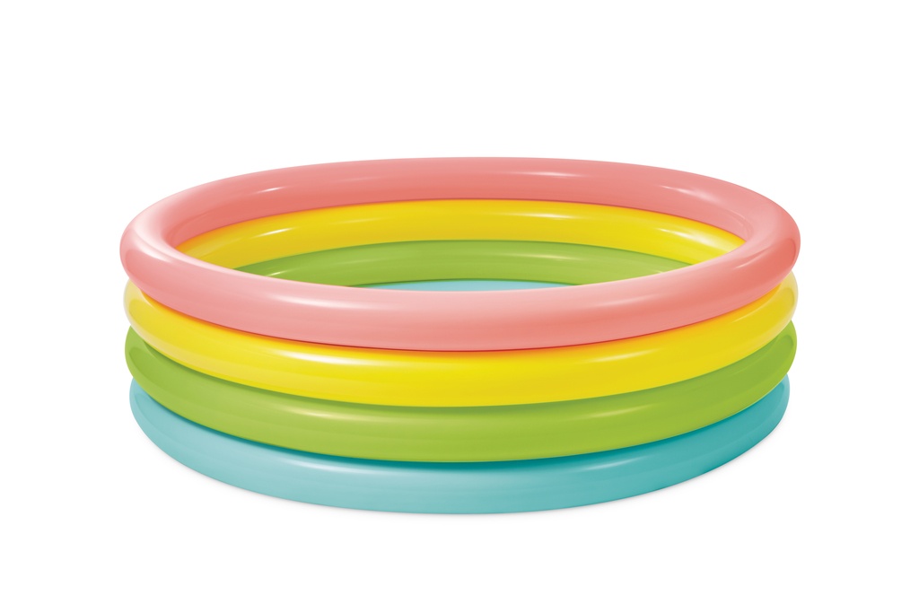Kolorowy czterokołowy basen dla dzieci w ogrodzie. Wysokość wody 37 cm. zawór spustowy.
