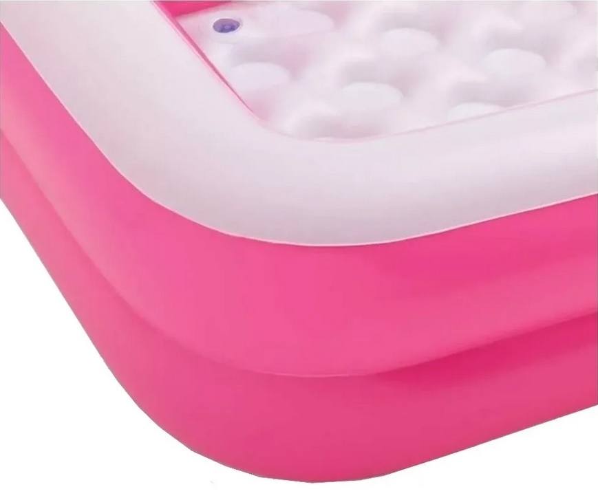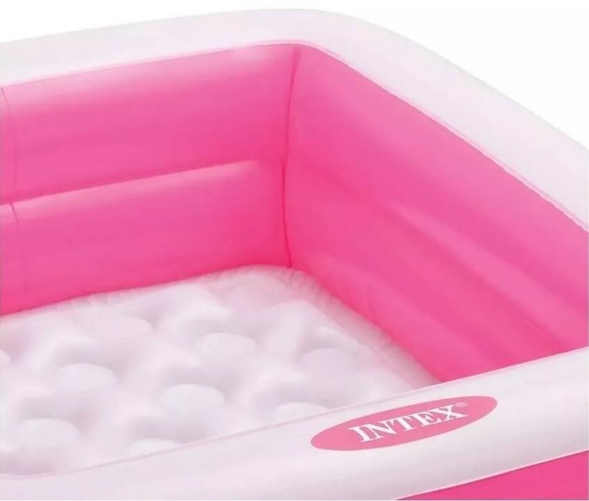 Basen dla dzieci z nadmuchiwanym miękkim dnem w kształcie kwadratu. Występuje w pastelowej róży.