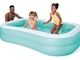 Dmuchany basen do ogrodu w oryginalnym niebieskim kolorze bezpośrednio zaprasza do kąpieli.