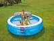 Przybliżony rozmiar basenu to 229 × 218 × 79 cm. Pojemność wodna – wysokość wody do ok. 30 cm ściany. Basen ma 2 komory powietrzne i zawór spustowy. Ławka do siedzenia, oparcie i dwa uchwyty na napoje zapewnią Ci komfort, na jaki zasługujesz. Odpowiedni od 3 lat zawsze pod nadzorem osoby dorosłej.