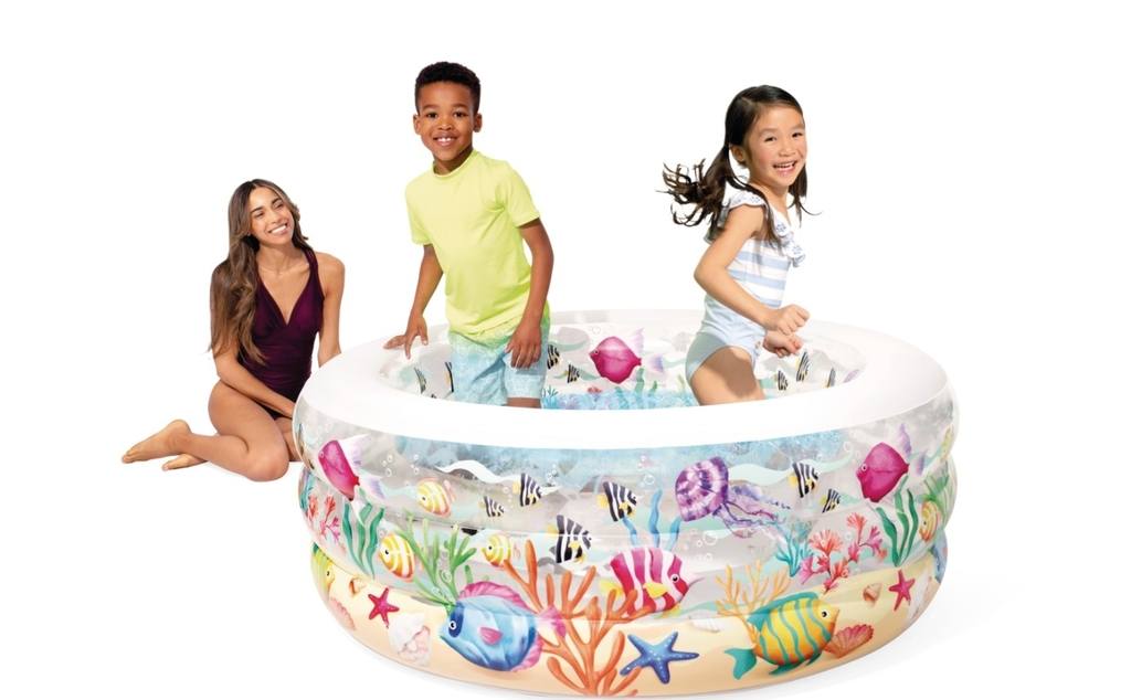 Nadmuchiwany basen dla dzieci z motywami akwarystycznymi.