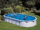 Owalny basen GRE Fidji to basen naziemny z szybkim i łatwym montażem bez bocznych rozpórek. Dostarczany z filtracją piaskową 8m3/godz.