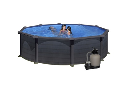Okrągły basen GRE Graphite to basen naziemny z szybkim i łatwym montażem. W zestawie z filtracją piaskową.