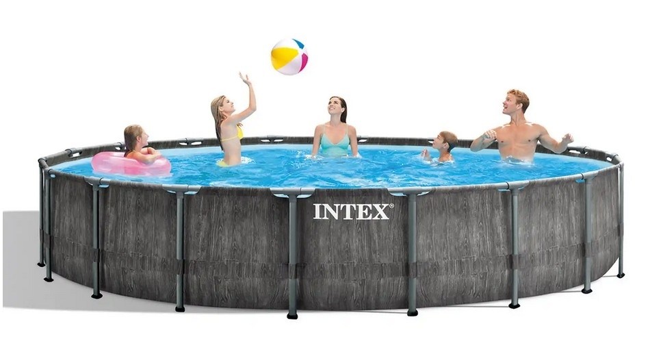 INTEX Prism Frame Greywood 5,49 x 1,22m to basen ogrodowy z metalową ramą do montażu powierzchniowego.