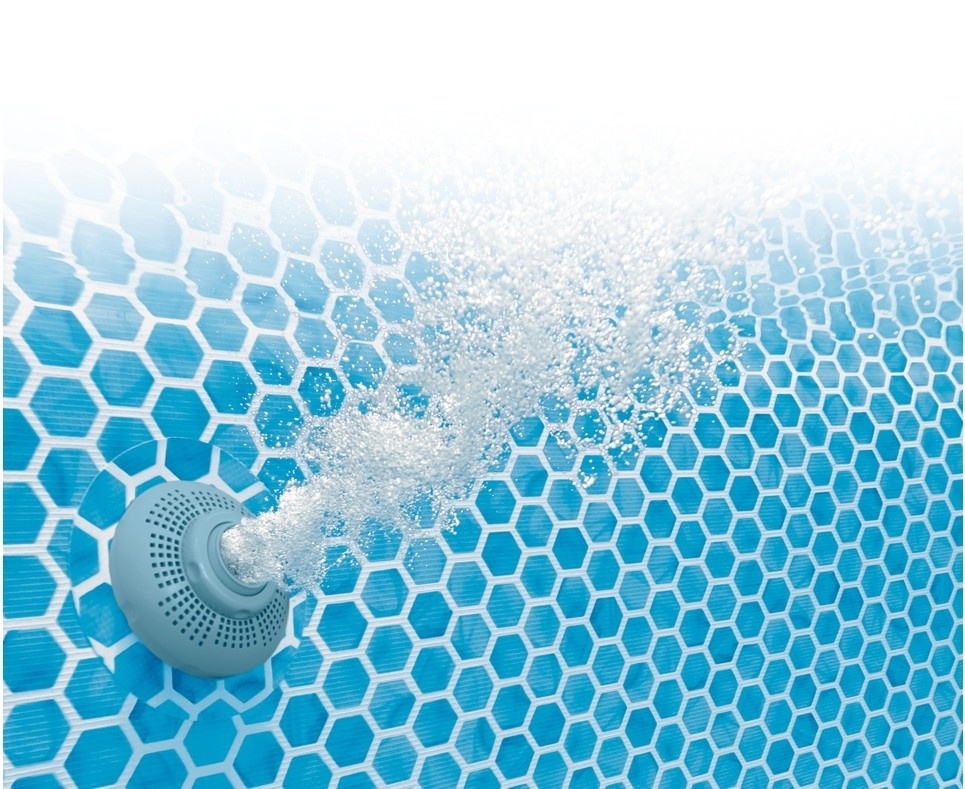 Dno i ściany boczne tej serii basenów wykonane są z 3 warstw materiału SUPER-TOUGH®. Ten bardzo mocny materiał składa się z poliestrowej tkaniny bazowej z mocnym, dwustronnie laminowanym PCV. SUPER-TOUGH® jest szczególnie odporny na ścieranie, uderzenia i światło słoneczne. Opróżnianie zapewnia zawór spustowy.