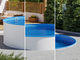 Częścią basenu jest niebieska folia PCV o grubości 0,4 mm, którą montuje się poprzez zawieszenie jej na blaszanej ścianie basenu.