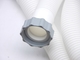 Zapasowy wąż INTEX o średnicy 38 mm z przyłączami śrubowymi na obu końcach.