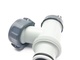 Do zaworu można podłączyć wąż INTEX ze złączem śrubowym lub wąż o średnicy 38 mm. Z drugiej strony przelotka przykręcana jest przez ścianę za pomocą złączki śrubowej.