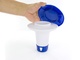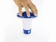 Mały dozownik pływający ze zintegrowaną kratką regulacyjną do dozowania środków chemicznych.