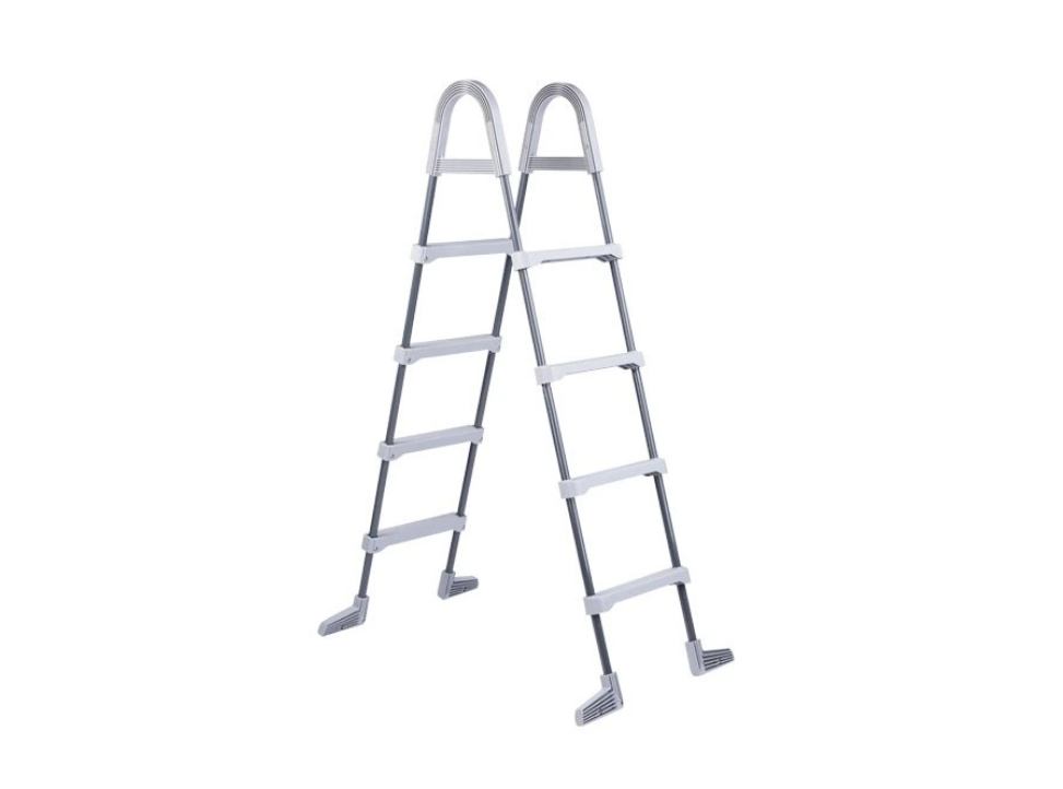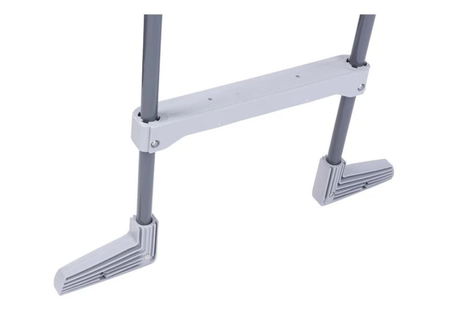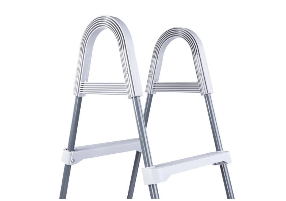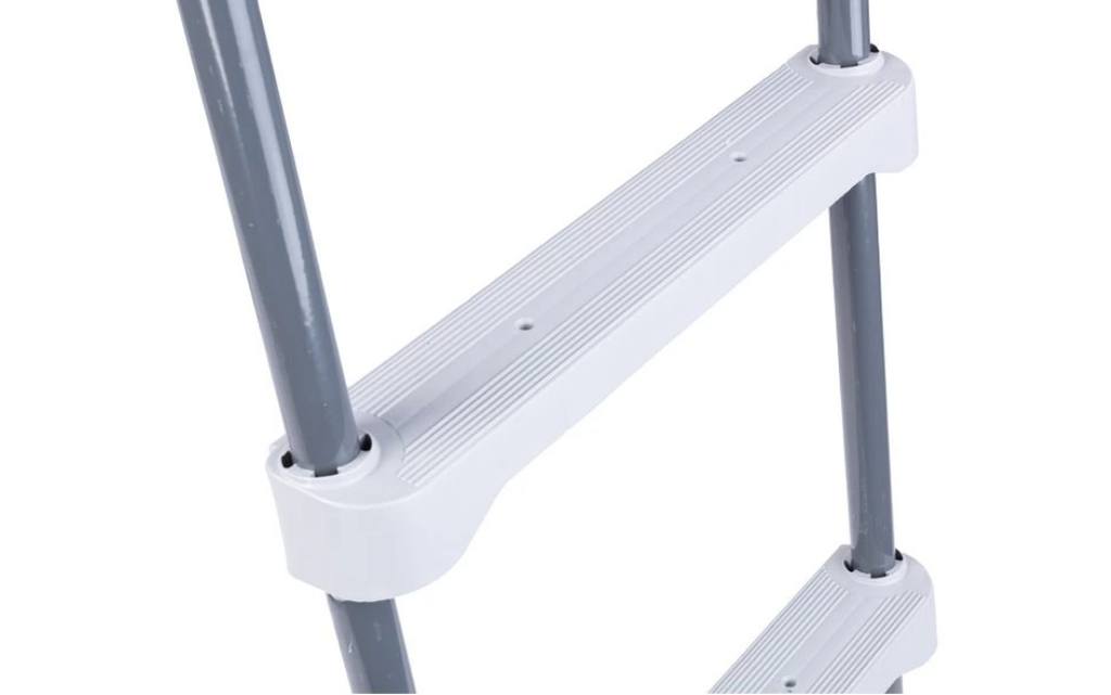 Metalowa rama stopni z plastikowymi stopniami. Przeznaczony do basenów naziemnych o wysokości ściany basenu do 122 cm.