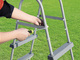 Schody basenowe do basenów naziemnych ze stopniami z tworzywa sztucznego. Do basenów naziemnych o wysokości ściany basenu do 84 cm.