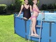 Metalowa rama schodowa z plastikowymi stopniami. Przeznaczony do basenów naziemnych o wysokości ściany basenu do 84 cm. Maksymalne obciążenie stopni 150Kg.