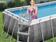 Metalowa rama schodowa z plastikowymi stopniami. Przeznaczony do basenów naziemnych o wysokości ściany basenu do 1,07m.
