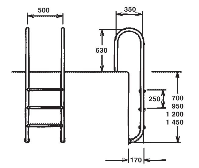Stopnie do basenów naziemnych wykonane ze stali AISI 316.