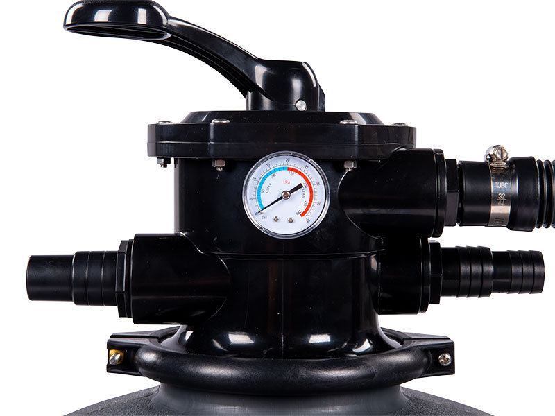 Filtracja piaskowa składa się z pojemnika filtra z zaworem 6-drogowym z manometrem, wężyków przyłączeniowych oraz pompy z dużym filtrem wstępnym.