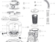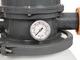 Urządzenie filtrujące składa się z plastikowej podstawy, polipropylenowego pojemnika filtra o średnicy 254 mm z górnym 6-drożnym zaworem zintegrowanym z pokrywą pojemnika, manometru oraz pompki z włosianym filtrem wstępnym.