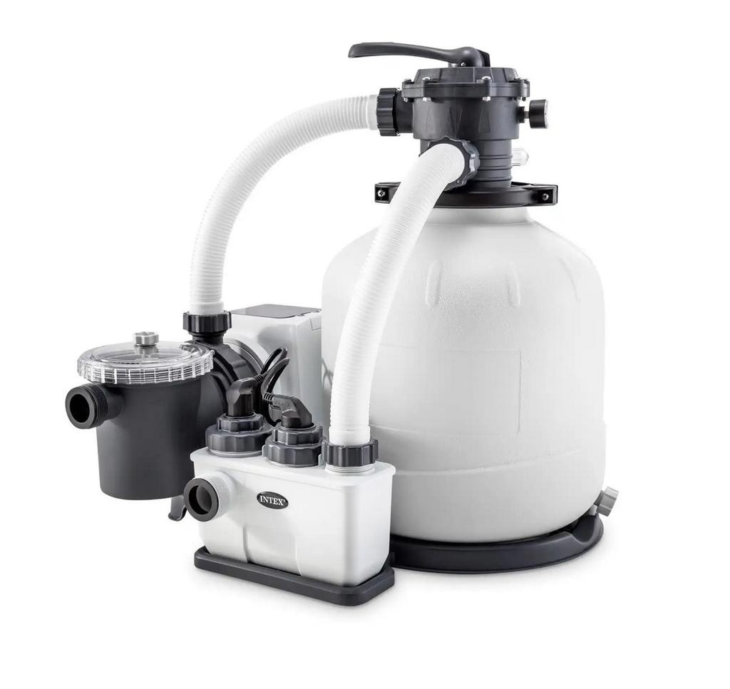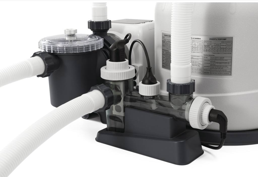 Filtracja piaskowa INTEX 8m3 ze zintegrowanym solinatorem do uzdatniania wody słonej. Filtracja odpowiednia szczególnie do basenów naziemnych.