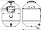 - Wymiary wysokość 697mm, średnica pojemnika 476mm, szerokość z zaworem bocznym 788mm