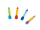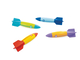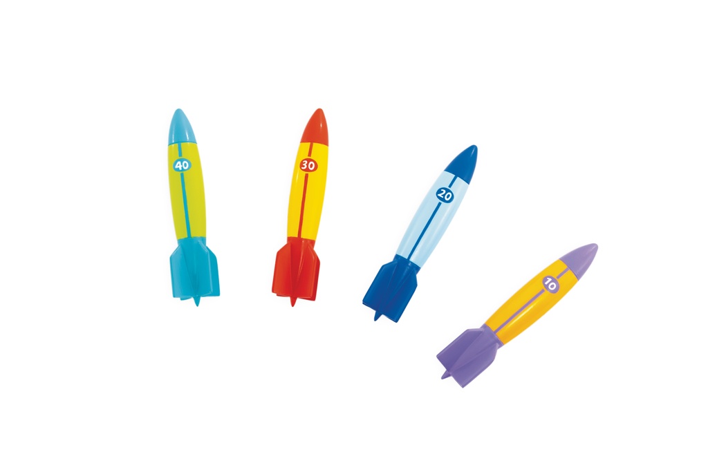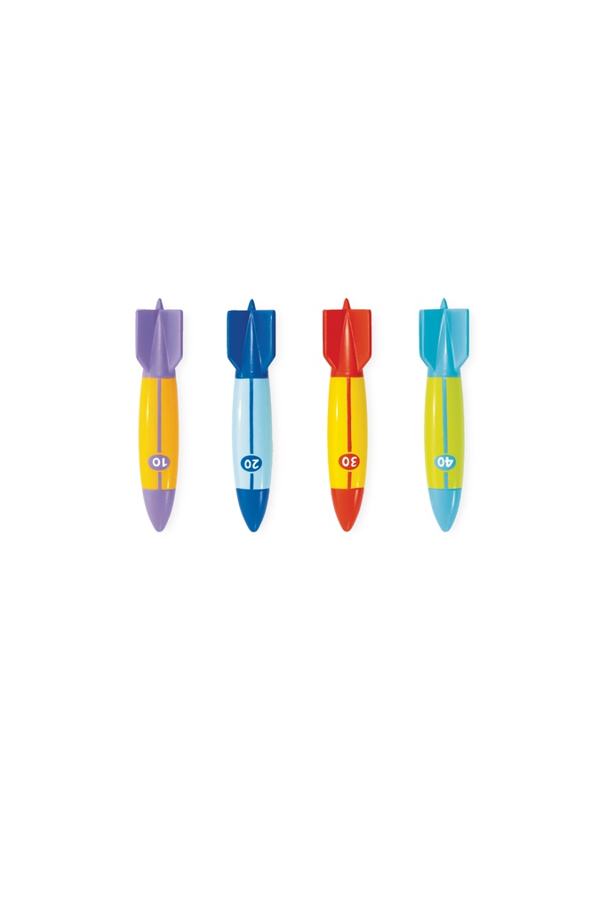 Zabawki do nurkowania w kształcie torped w wesołych kolorach.