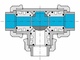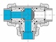 Możliwość regulacji przepływu wody w kształcie litery T.