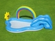 Dmuchane centrum oferuje wiele atrakcji, takich jak ochłodzenie się w wodzie pod fontanną lub po prostu zabawa.