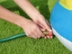 Prysznic jest podłączony do standardowego węża ogrodowego.
