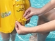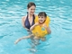 Kamizelka pomaga utrzymać się na powierzchni podczas pierwszych prób nauki pływania.