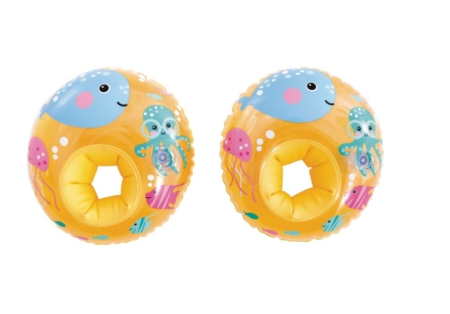 Wesołe, nadmuchiwane owalne rękawy w kolorze żółtym z obrazkami przyjaciół morza.