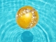 Nadmuchiwana piłka plażowa Bestway wypełniona brokatem.