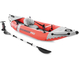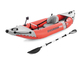 Nadmuchiwany kajak dla jednej osoby z wiosłem i pompką ręczną.