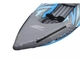Nadmuchiwany kajak dla jednej osoby z wiosłem i pompką ręczną.