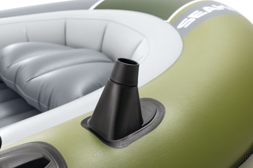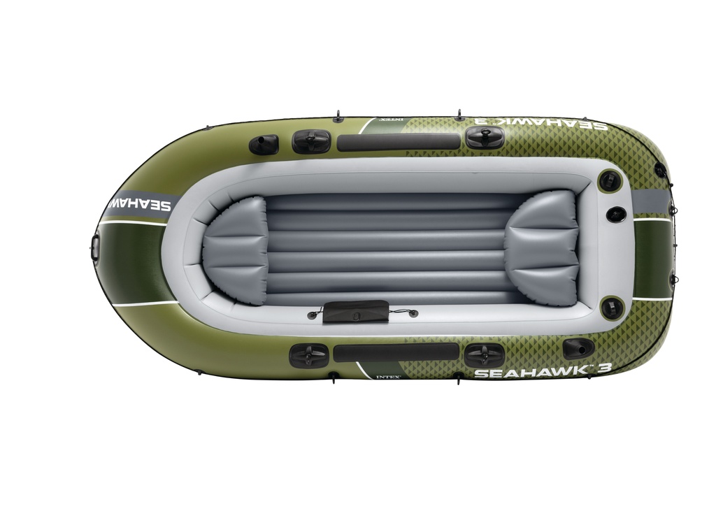 Łódź Intex Seahawk 3 oferuje miejsce dla 3 osób lub maksymalnie 360 kg. Dzięki wymiarom 295 × 137 × 43 cm oferuje wystarczająco dużo miejsca. Ta łódź ma trzy komory powietrzne, 2 duże zawory Boston do szybkiego pompowania, 2 uchwyty na wędki, uchwyt na podwozie i przygotowanie do podłączenia silnika.