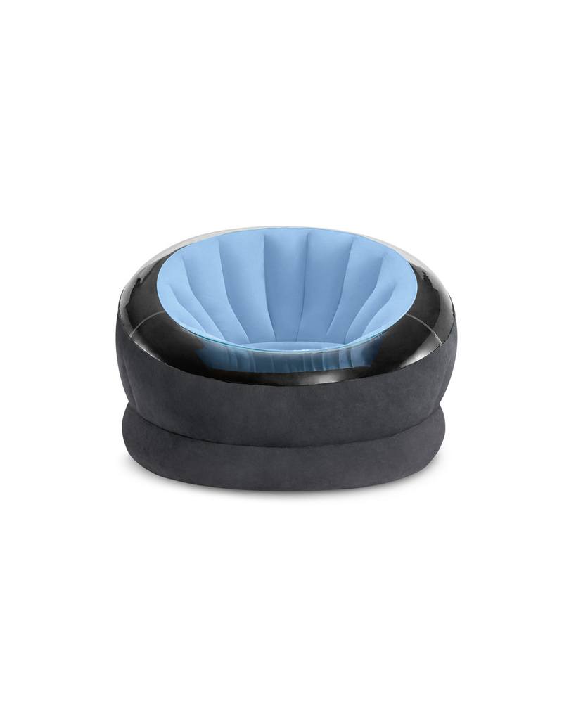 Dmuchane krzesło o wymiarach 1,12 mx 1,09 mx 69 cm.