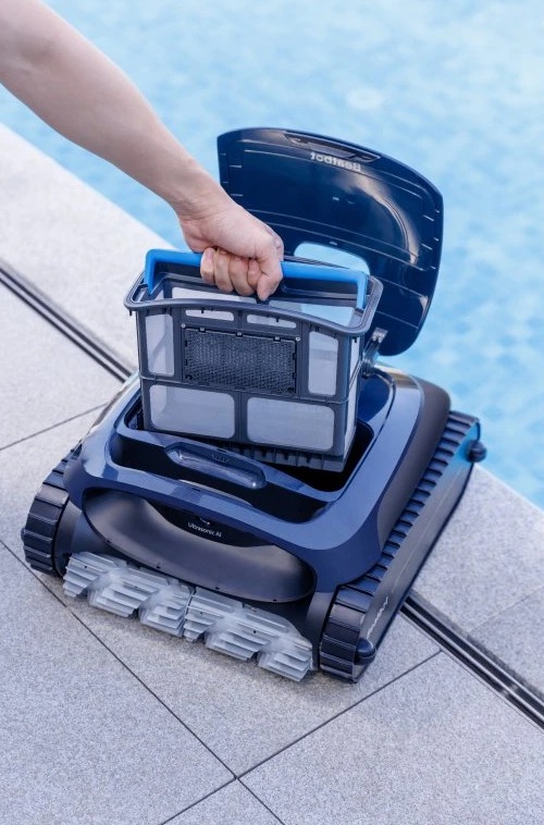 Luksusowy, w pełni automatyczny, bezprzewodowy odkurzacz basenowy, który czyści dno, ściany i linię wody, a po zakończeniu pracy sam się wynurza i zatrzymuje na krawędzi basenu. Nadaje się do basenów o powierzchni do 300 m².