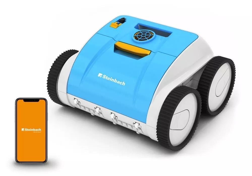 Bezprzewodowe urządzenie do czyszczenia basenów Steinbach Poolrunner Battery Pro czyści dno i ściany basenu bez kabli! Wersja ze sterowaniem za pomocą aplikacji w telefonie.