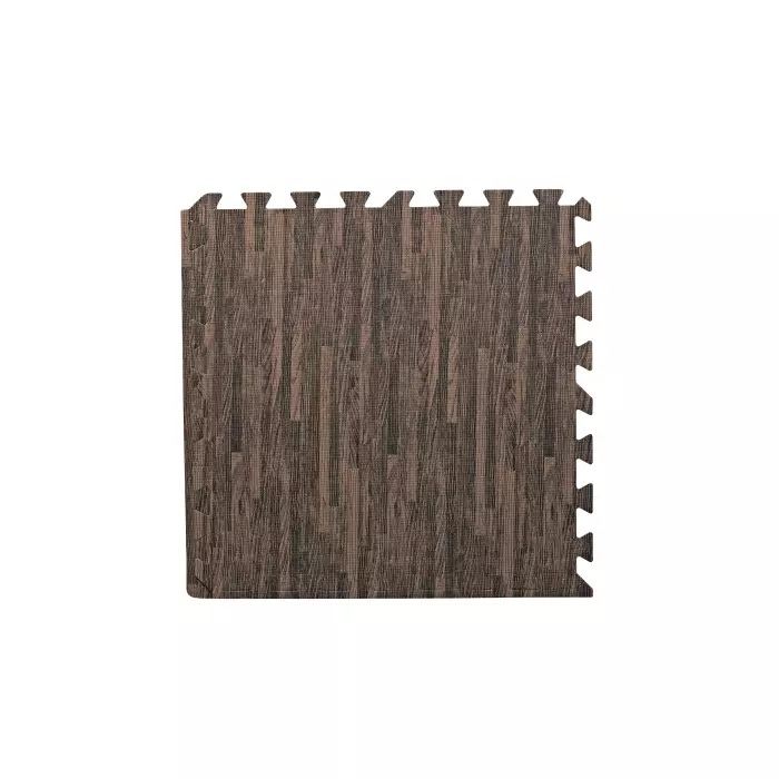 Trwała pianka polietylenowa z realistycznym dekorem drewna, w zestawie segmenty końcowe do wyrównywania krawędzi maty.