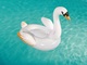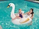 Duży dmuchany leżak do spokojnej wodzie z motywem łabędzia.