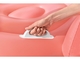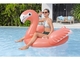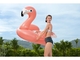 Duży dmuchany leżak w spokojnej wodzie z motywem flaminga.