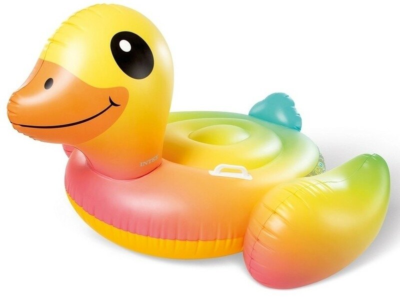 Oryginalna i zabawna dmuchana leżanka wodna w kształcie kaczki. Maksymalne obciążenie 40 kg.