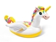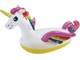 Nadmuchiwany kolorowy jednorożec o wymiarach 198 x 140 x 102 cm.