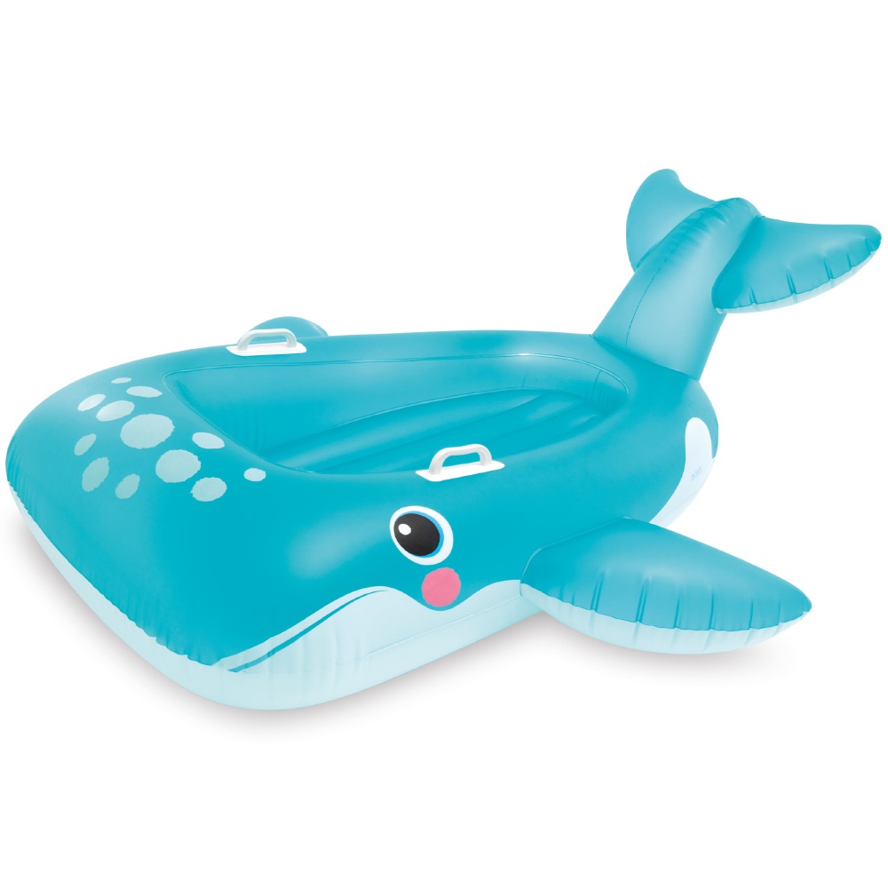 Dmuchane zwierzątko w kształcie wieloryba o wymiarach 168 × 140 cm.