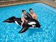 Nadmuchiwany pojazd wodny w kształcie orki o wymiarach 193 x 119 cm.