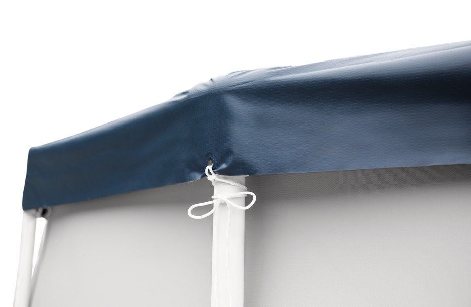 Ta pokrywa wykonana jest z wytrzymałego, odpornego na promieniowanie UV, trójwarstwowego polietylenu. Chroni basen przed liśćmi i zanieczyszczeniami, utrzymując go w czystości i gotowym do użycia. Sznurki ściągające utrzymują pokrywę szczelnie i zapobiegają przedostawaniu się zanieczyszczeń do basenu. Posiada 20-centymetrowy wysięgnik, który ułatwia mocowanie do krawędzi.