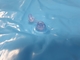 Dmuchana poduszka posiada dwa uchwyty, za pomocą których można przymocować poduszkę do krawędzi basenu i w ten sposób zapewnić, że poduszka zawsze znajduje się na środku basenu i ułatwić manipulację prześcieradłem. Produkt nie zawiera linki mocującej.