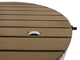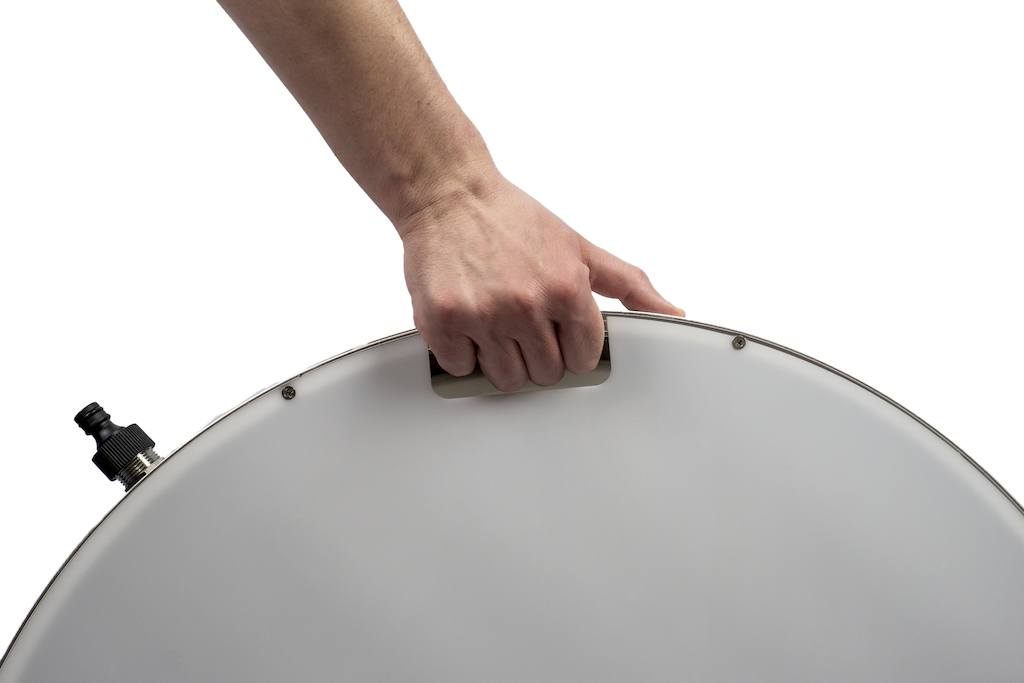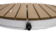Deska prysznicowa ma średnicę ok. 70 cm i jest wykonana z wysokiej jakości WPC w imitacji drewna tekowego. Waga płyty prysznicowej wynosi 7 kg. Od spodu płyta prysznicowa ma praktyczny uchwyt, dzięki czemu można ją łatwo przenosić w dowolne miejsce w ogrodzie.