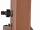 Prysznic solarny z aluminiowym zbiornikiem na 32l wody w dekorze drewno i kranem do mycia stóp.