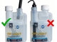 Butelka ma dwa otwory: otwór do napełniania (zabezpieczony aluminiową plombą zabezpieczającą) oraz otwór na komorę dozującą, do którego wkłada się sondę pomiarową. Zerwanie plomby na otworze do napełniania powoduje utratę prawa do reklamacji.
